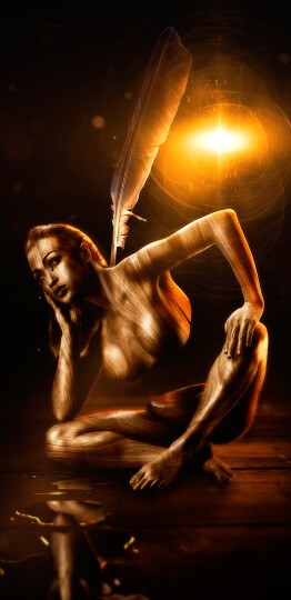 *{This I me exclaiming “Woman, Thou Art God” or something to do with emancipation of women & I am joyful. My spiritual power makes me do these things. I represent Matriarchy, female family/world dominance.}*